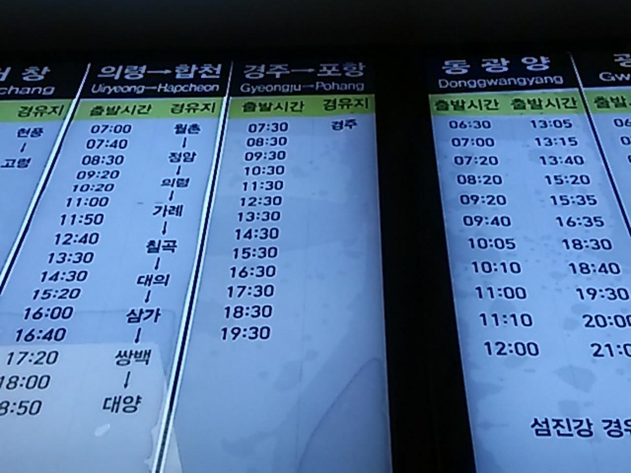慶州経由浦項行きバス