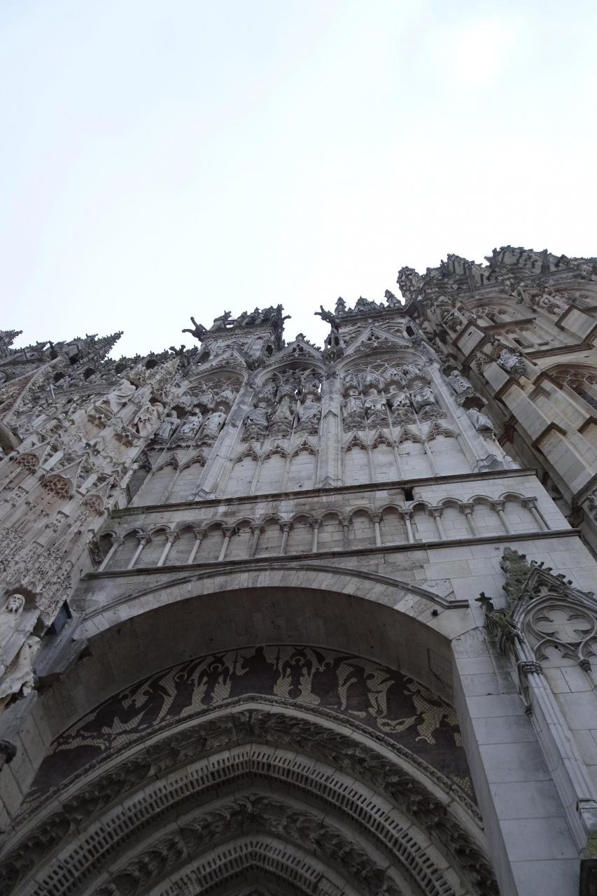1063年の創建から数世紀にわたって建築が進められた。ファザードや尖塔に見られるその微細な装飾は後期ゴシックのフランボワイヤン様式のものです。時期により印象が変わるこの大聖堂を、モネは何枚も描いています(たぶんこの後で紹介できると思います) -