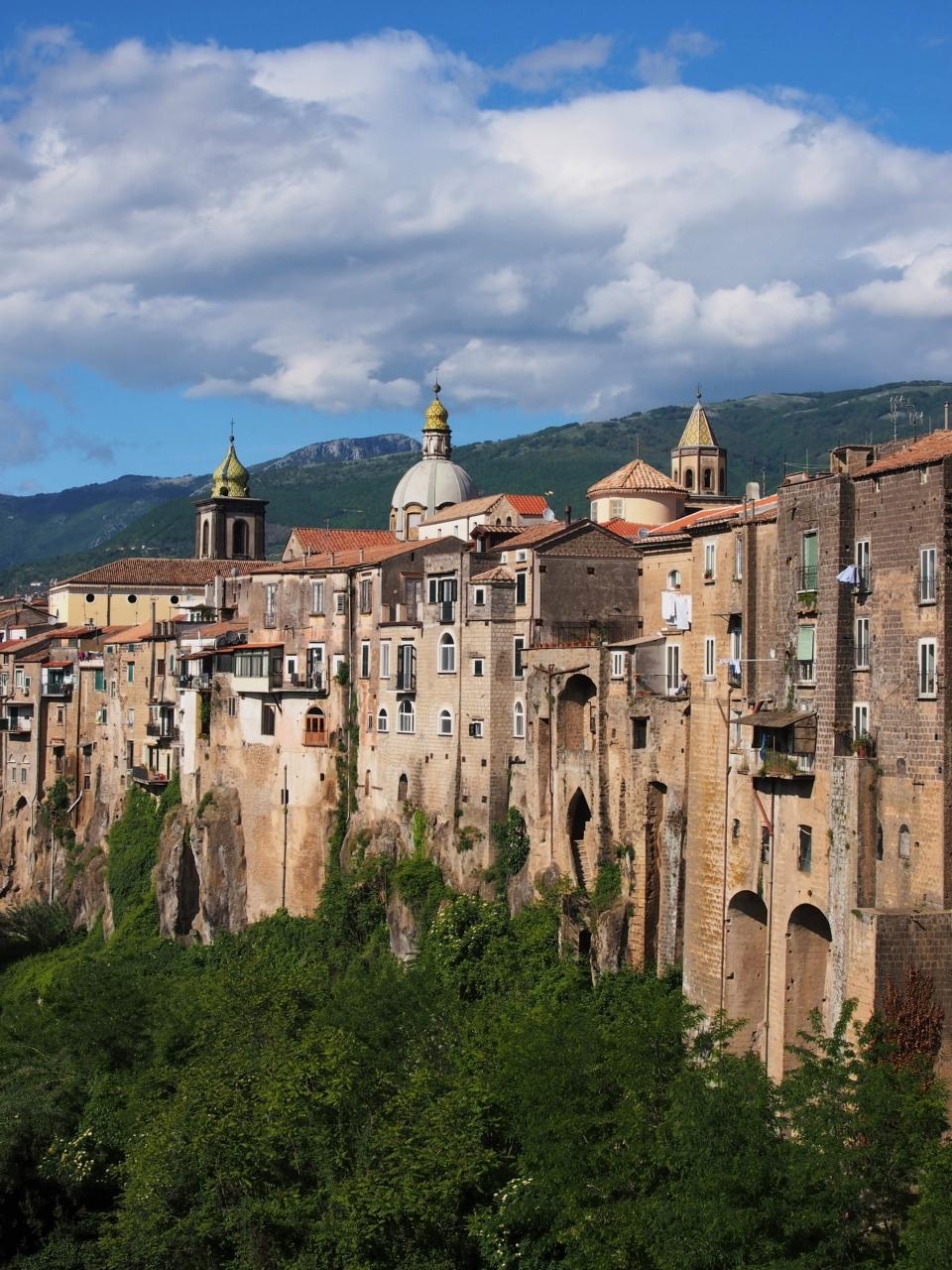 Buongiorno~~!ゆるゆる~~わが家の南イタリア旅 15 「イタリアの最も美しい村」のひとつ・・・サンタガタ・デ・ゴティ Sant'Agata de' Gotiまち歩き その2 西日に輝く絶壁の家並みと、静かな夜の街