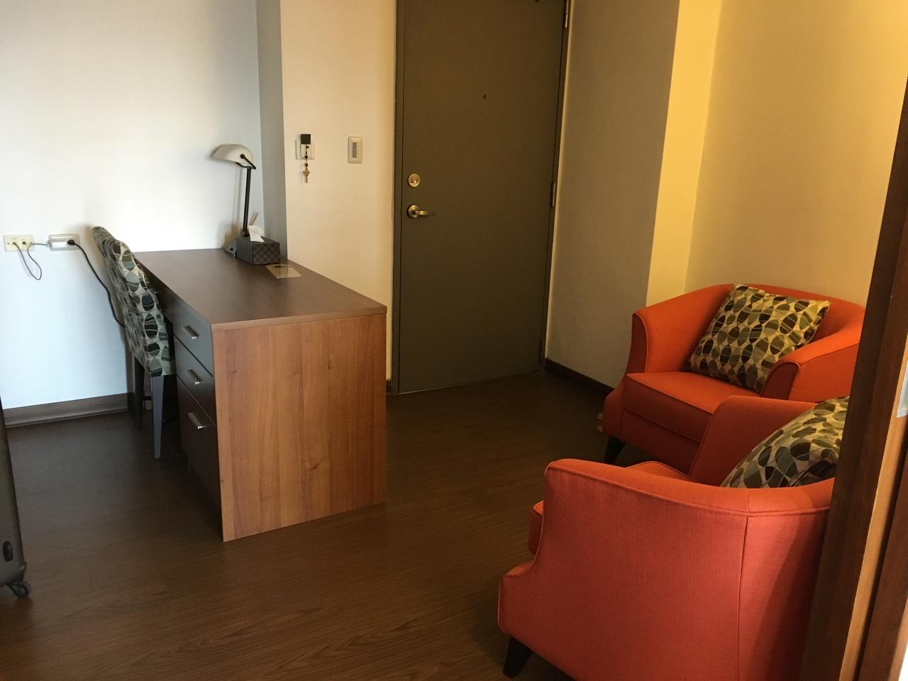今回のホテルのお部屋はこんな感じのリビングがついていました。