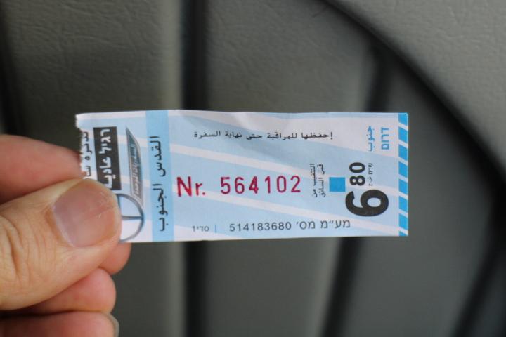 エルサレム行のバスに乗車。16NIS。日本円で500円程度だ。 -