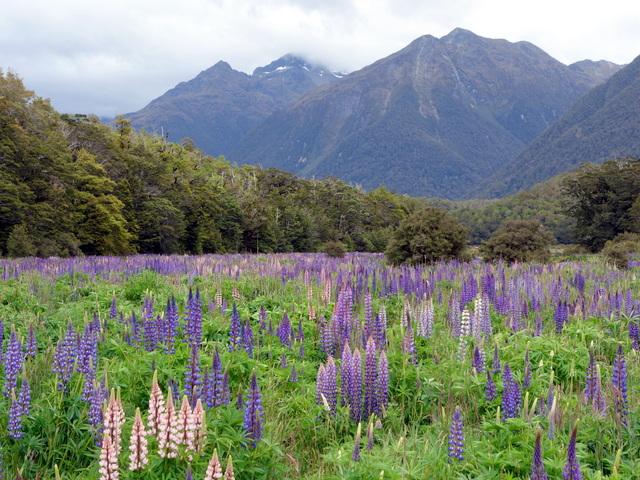 テアナウではモーテルではなく、テアナウキウイホリデーパーク中の一軒家を予約した。どうしてもバスタブが必要との声に負け、ロッジにしたのだが、バブルバスが備わり、初夏の花に囲まれ、湖の見える素敵なロケーションであった。