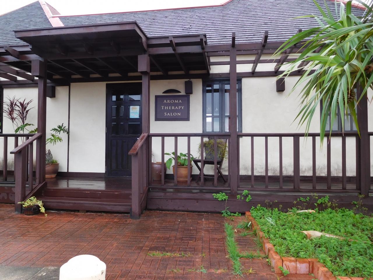 写真はJALプライベートリゾート オクマ、フロント前の飾りつけとフラワーディスプレイ