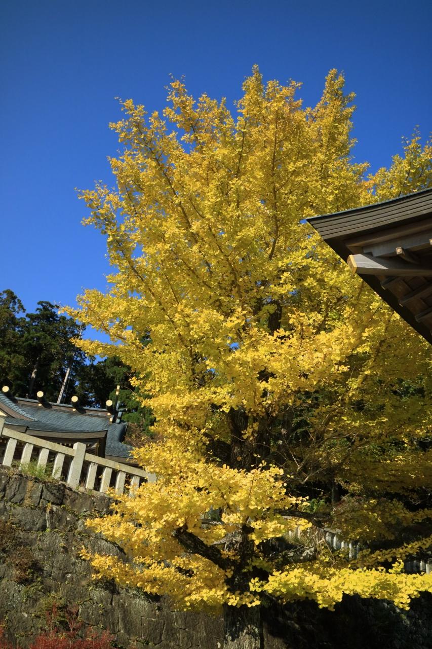 青空、狛犬、銀杏
