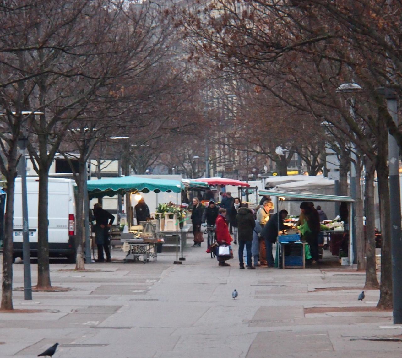 ソーヌ川を渡り 新市街側の 河岸通りの マルシェ。