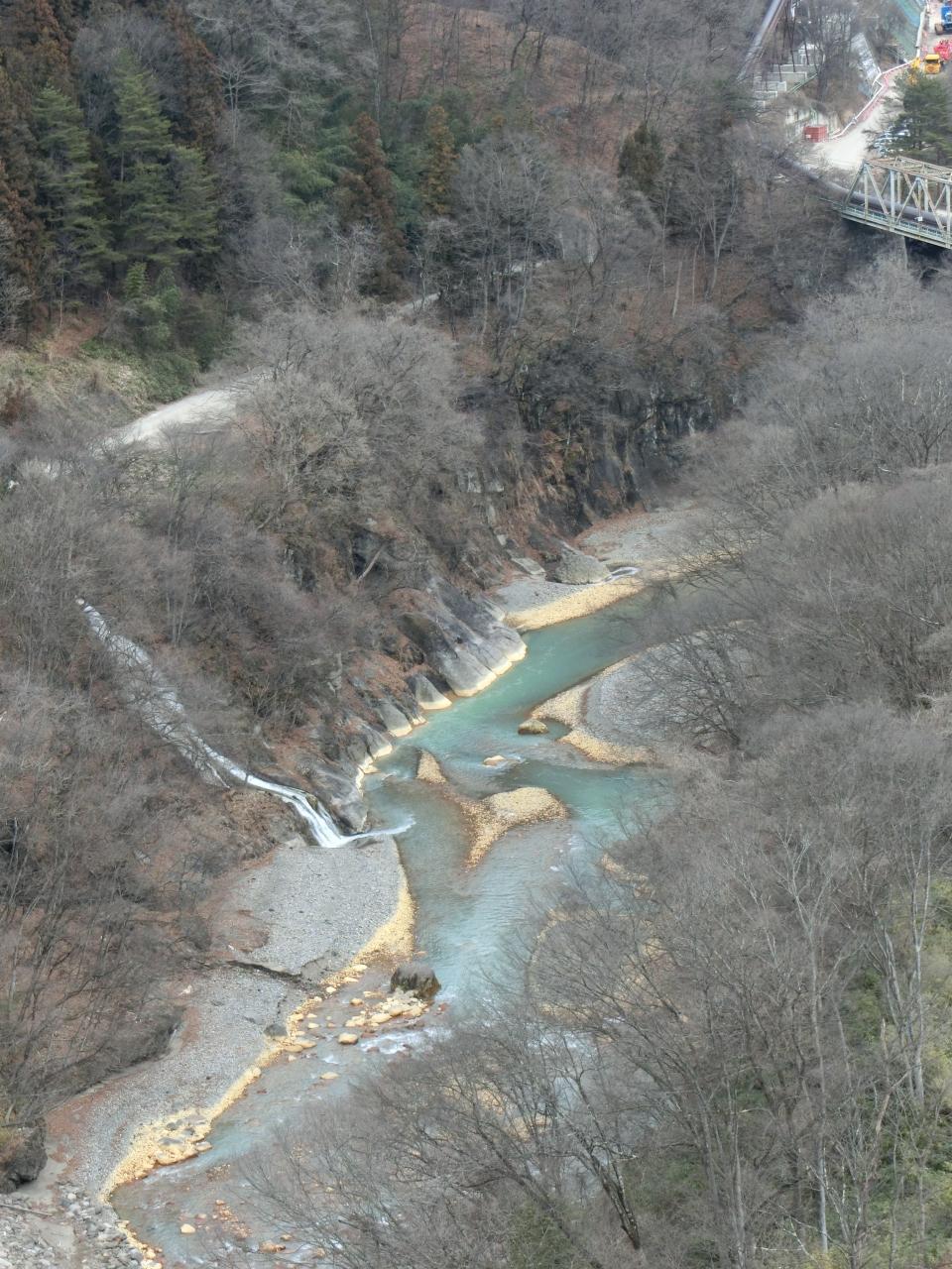 八ッ場ダムの建設により、県道と川原湯温泉の街が水没してしまうため、高所に架けられた橋です。