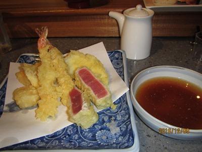 マグロのせケールの天ぷらは7ドル、エリンギの天ぷらは8ドル、