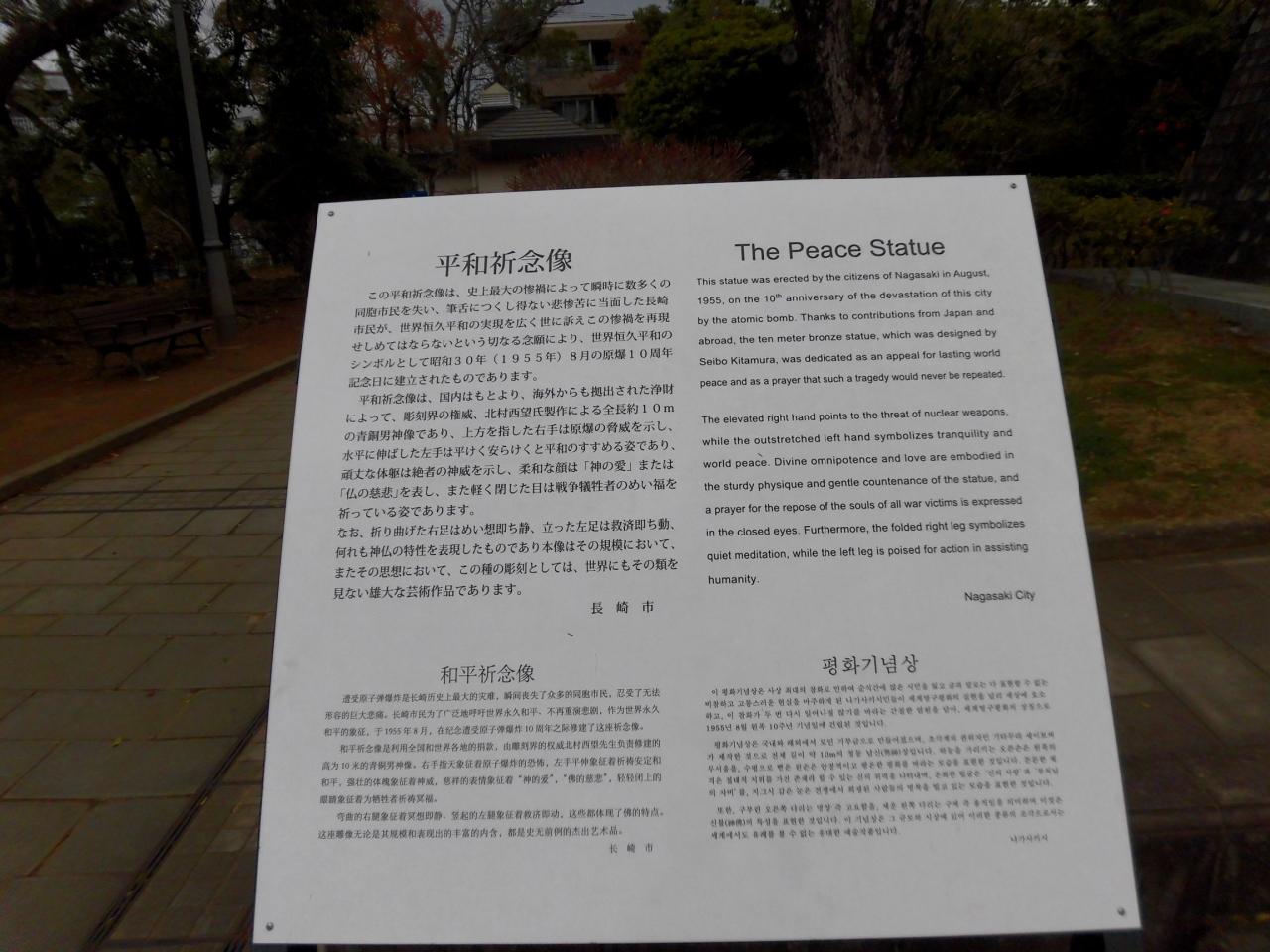 地下駐車場から階段を上がると、平和祈念像の脇に出ます。
