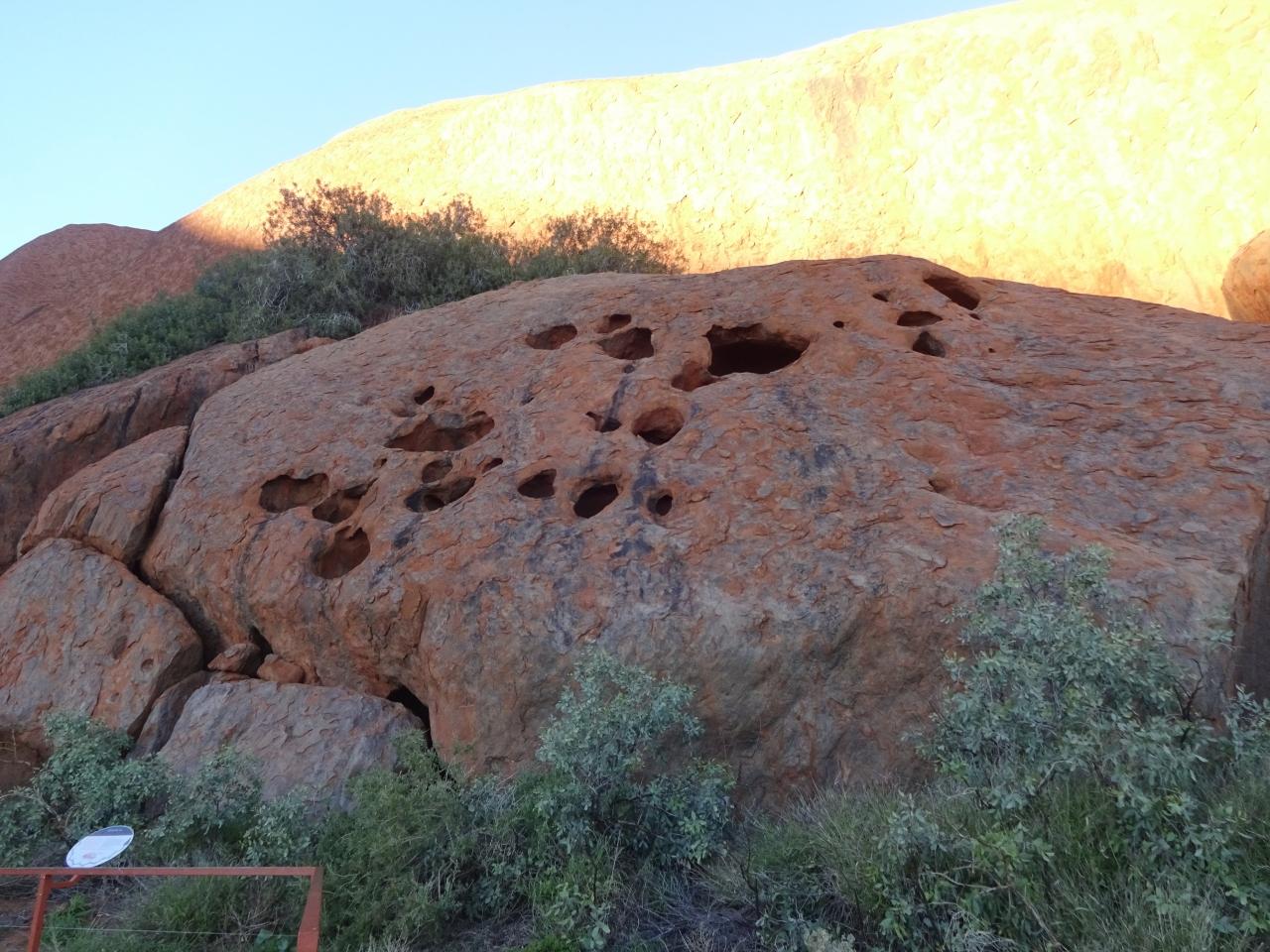このあたりのウルルの岩壁は険しく、高さもあります。