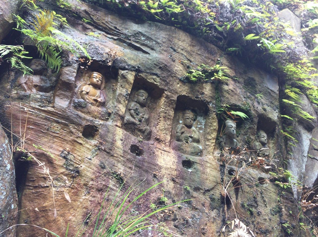 806年、空海が唐から帰国し立ち寄った際に、釈迦三尊を岩肌に刻んだことから始まるそう。ただ、今のところ証拠がない模様。。鵜殿石仏群 名所・史跡