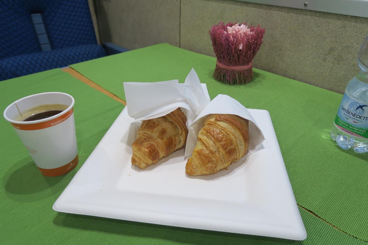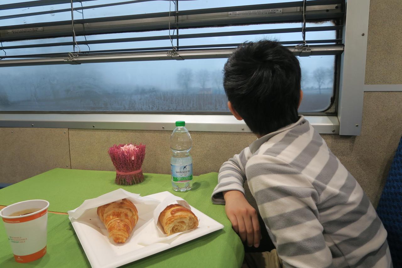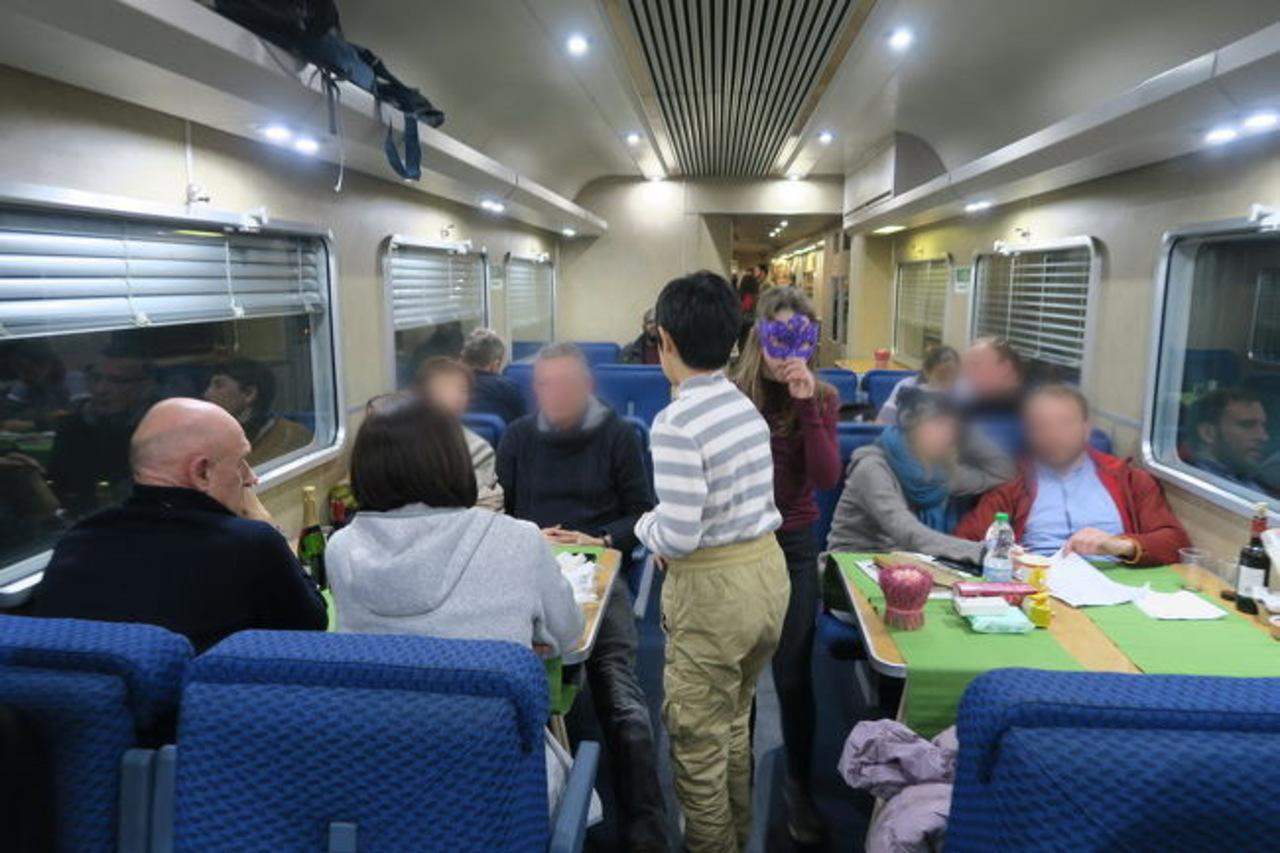 ミラノから乗る場合23時。しかもこの日は大晦日で食べ物を買って乗り込むのも不便な時間帯ですが、心配は無用。