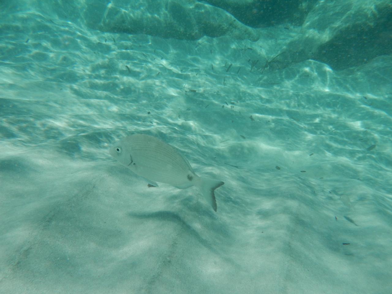 岩場近くに魚は泳いでいましたが、種類は少なかったです。 -