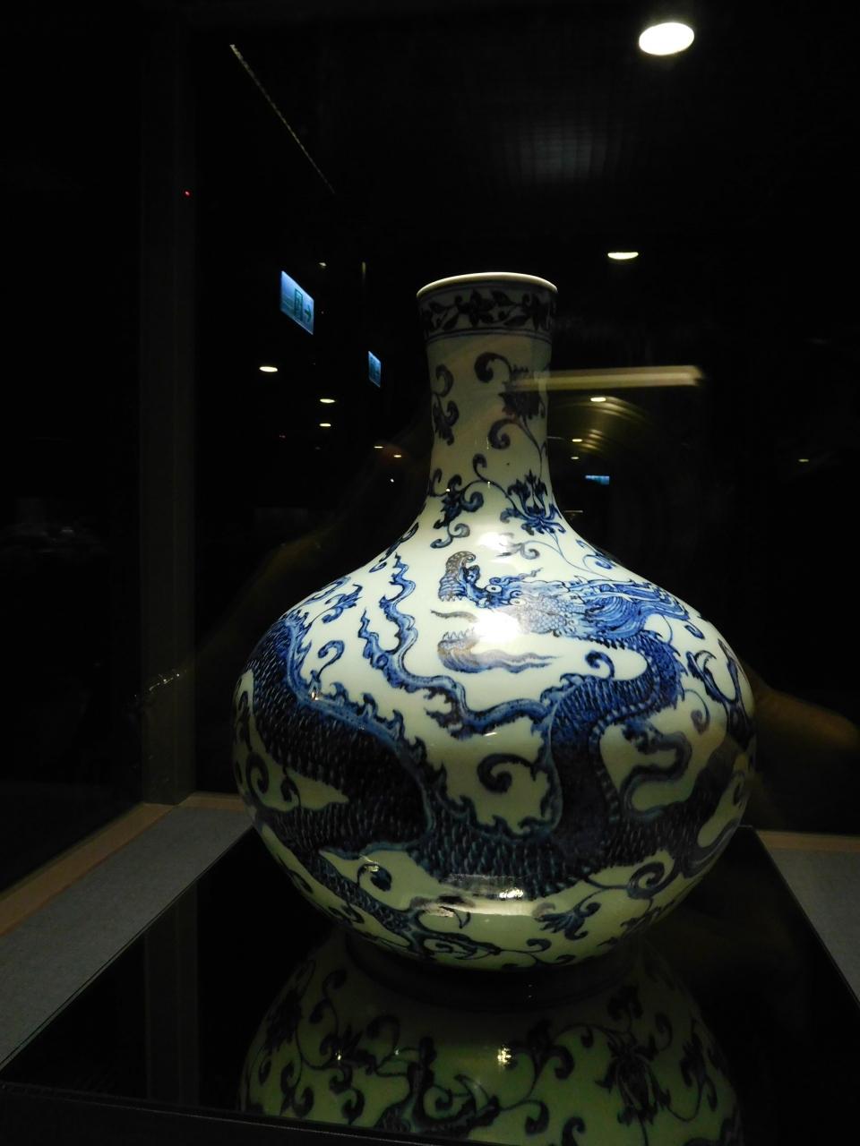 官窯 青花蟠 龍天球瓶