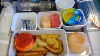 機内食の朝ごはん(フルーツもついてて充実してました)