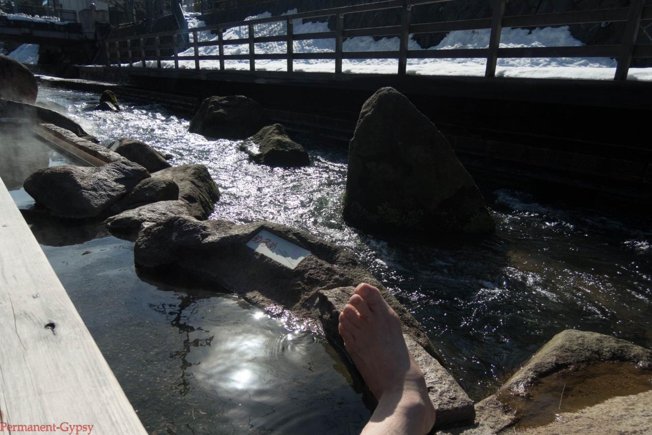 こんな感じで・・・最初はぬるめに入り、だんだん熱い方へ移動していく。