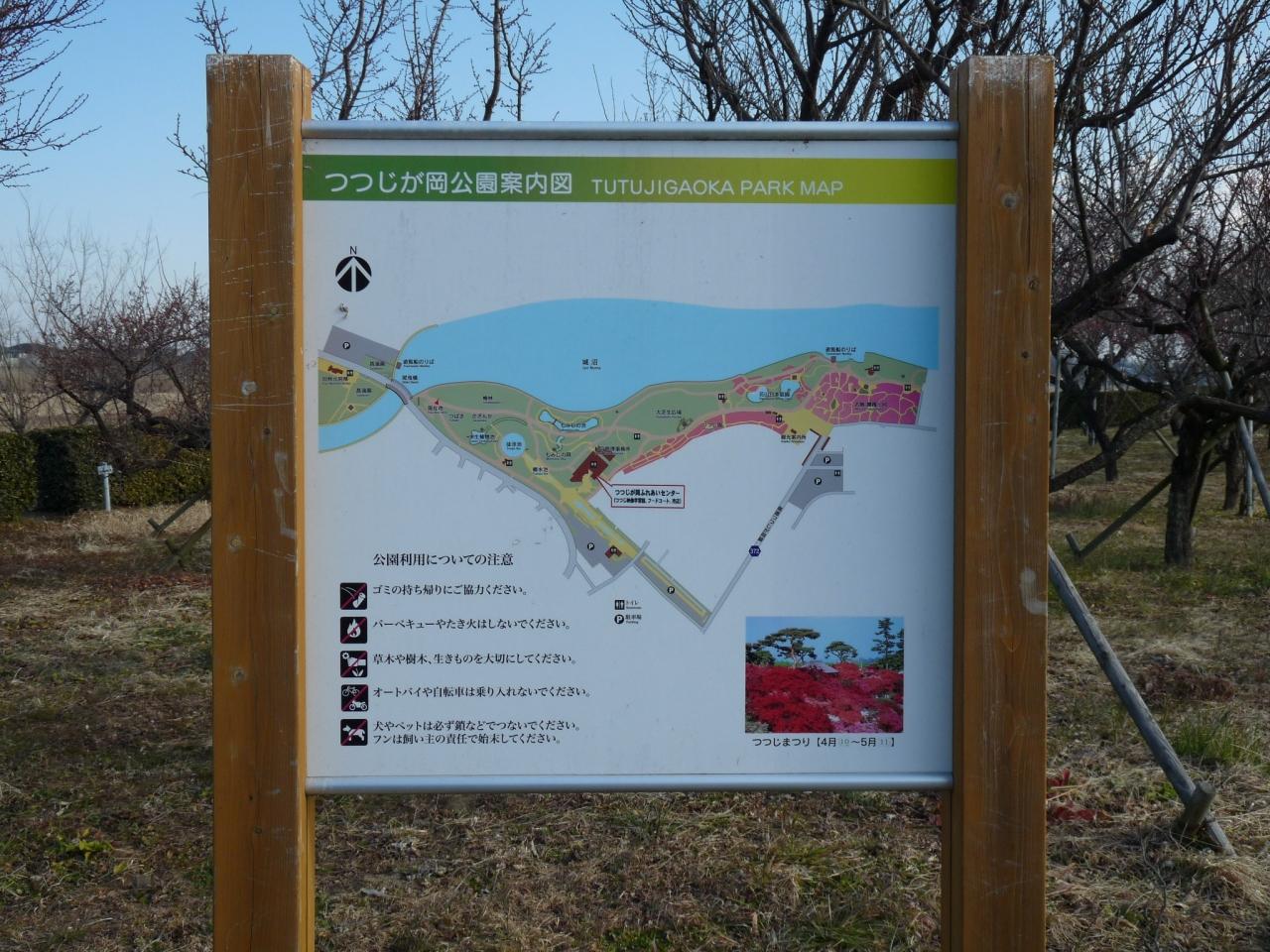 橋から階段を下ると、梅林エリアの端に「つつじが岡公園案内図」があります。