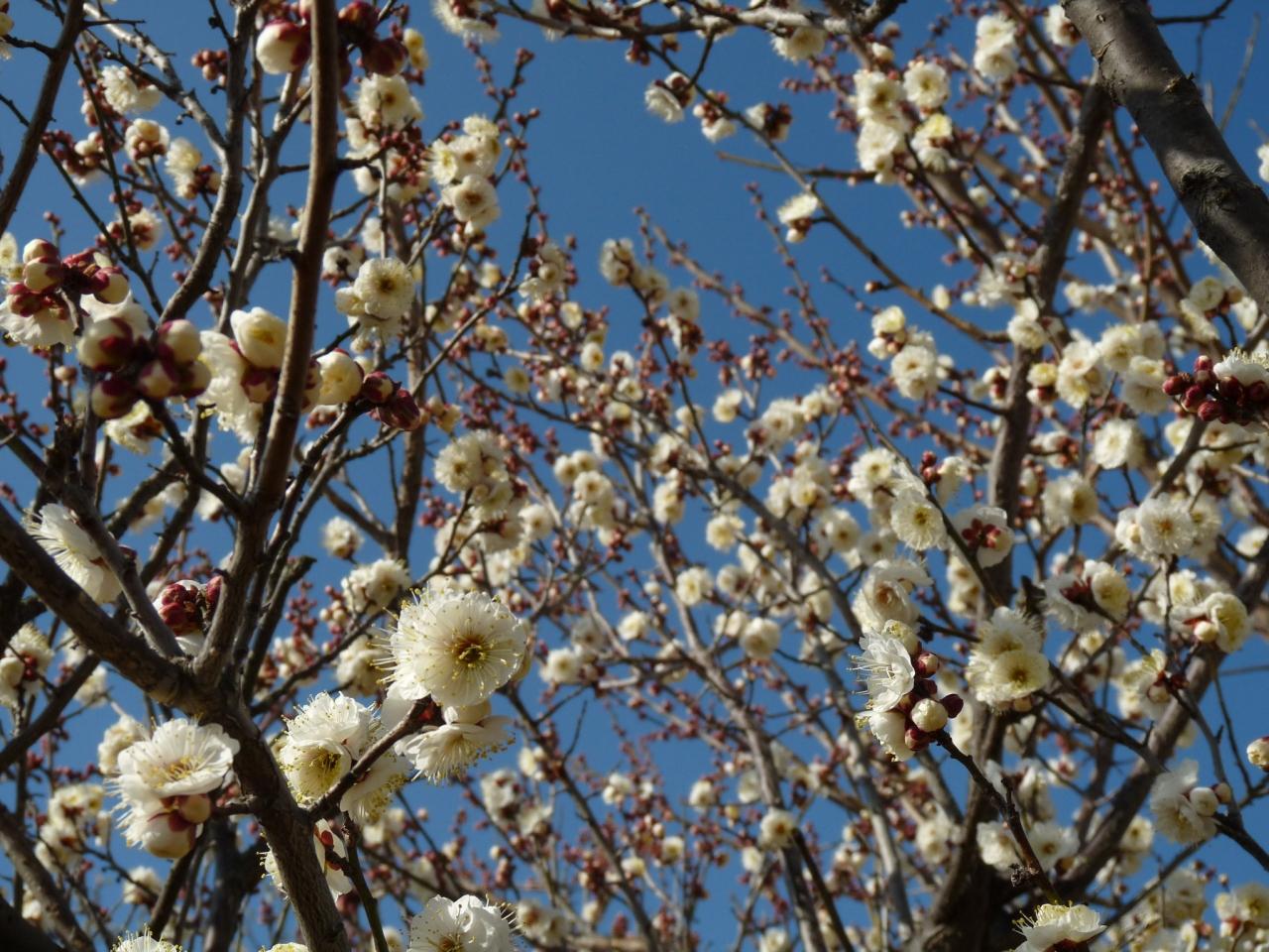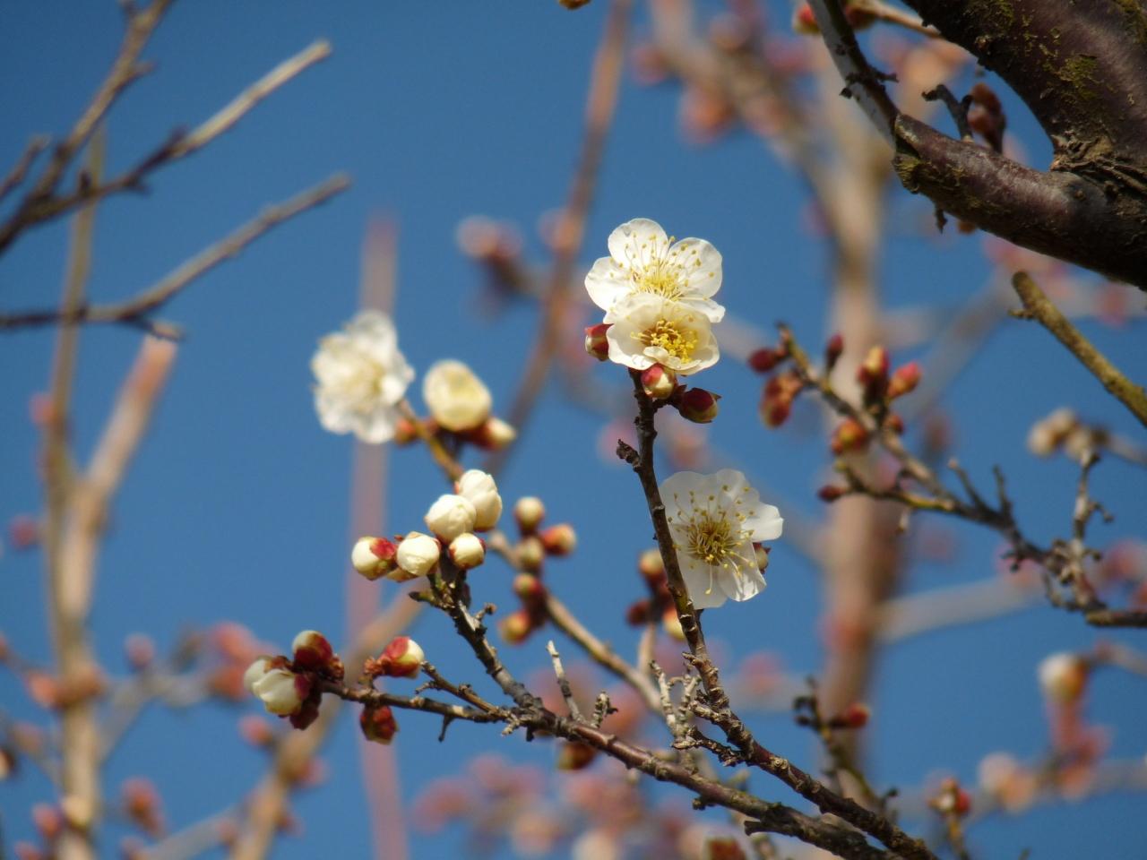 つつじが岡公園のウメ_2017_白梅は咲き始め、紅梅は見頃過ぎ、ロウバイは8分咲き程度で見頃だった。(群馬県...