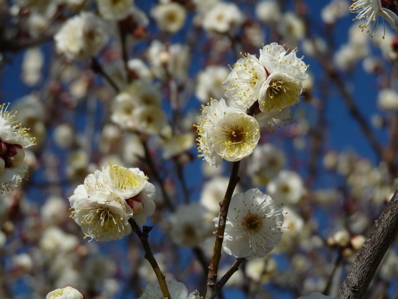 その隣の白梅は、まだ咲いている花は少なくて、