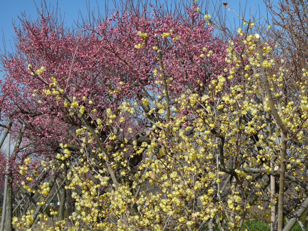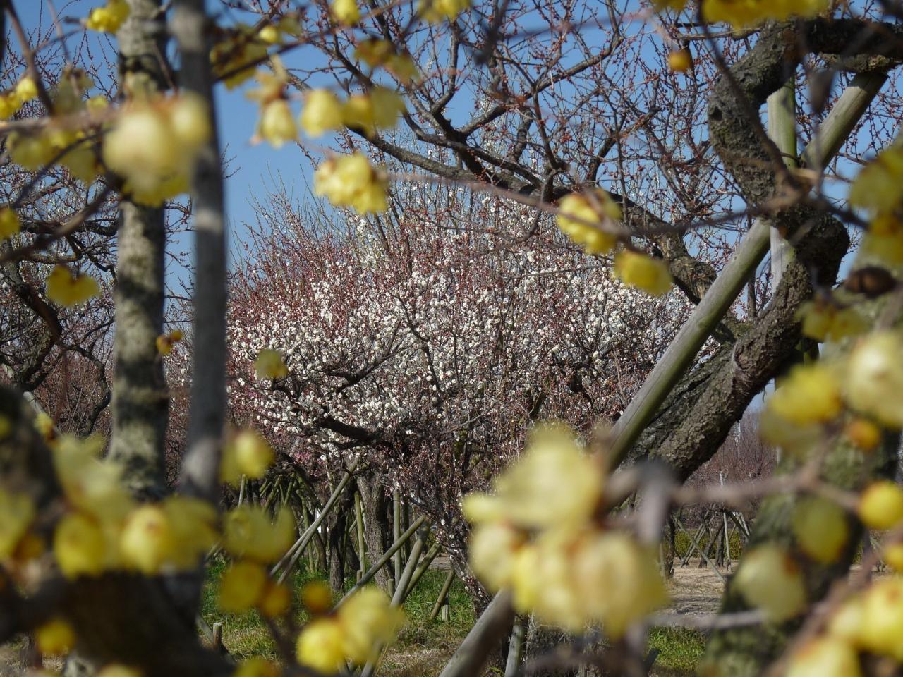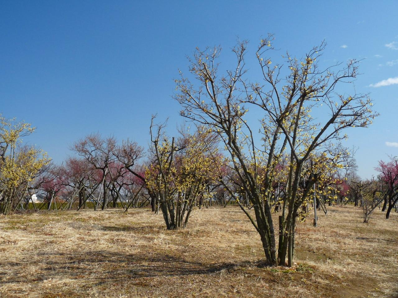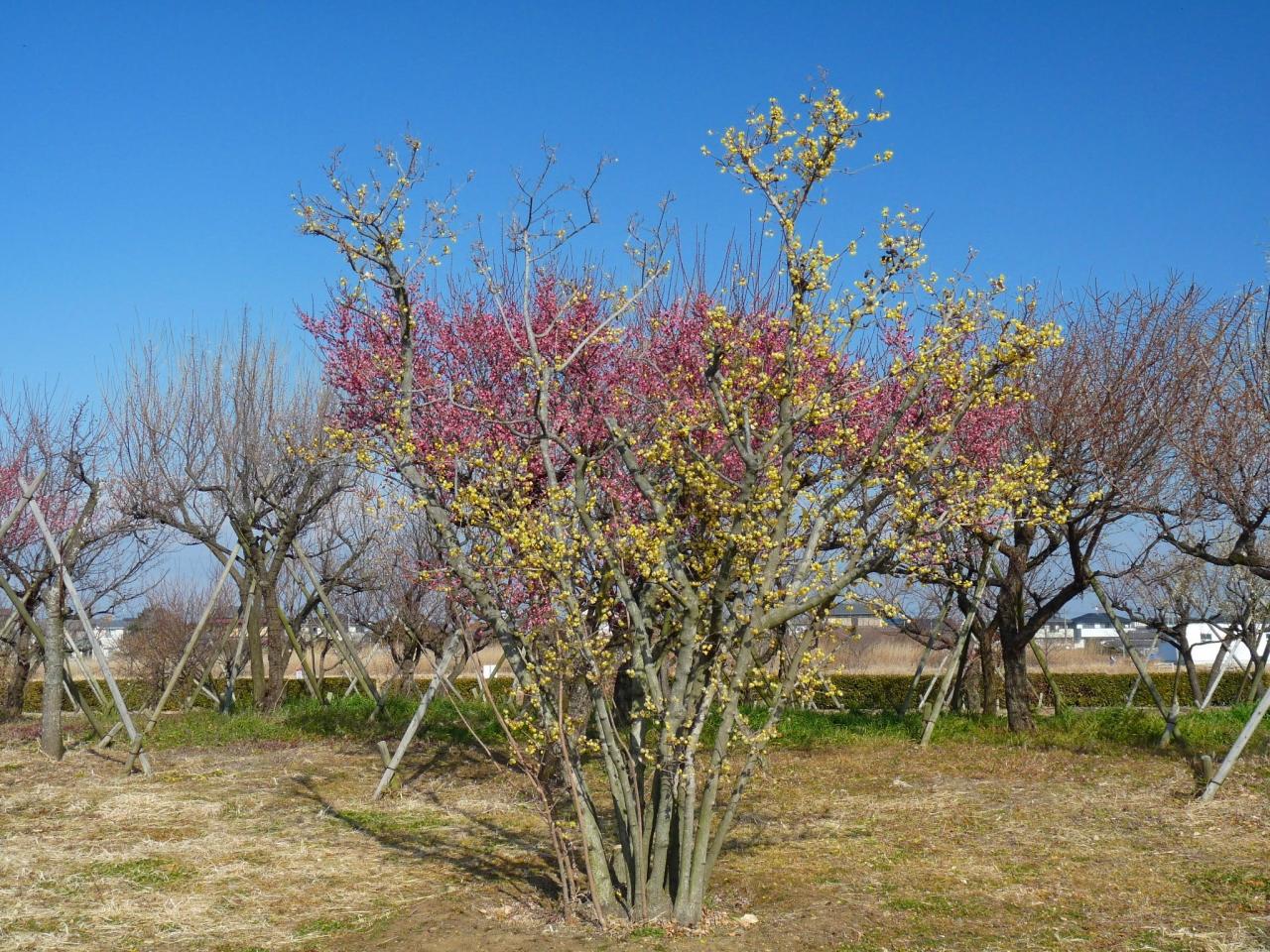 梅林には、白梅、紅梅、ロウバイが植えられています。