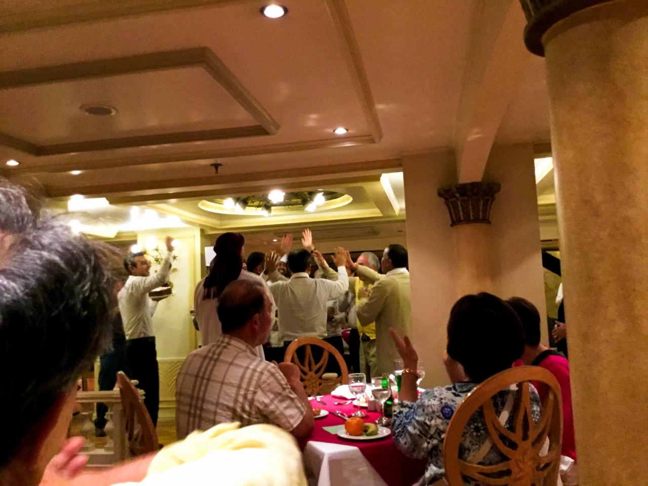 船スタッフで,みんなで祝福。 -