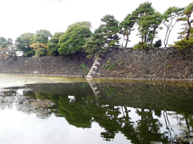 奥の生垣は山茶花で天皇陛下の誕生日の参賀の時に赤と白の花が咲くそうです。