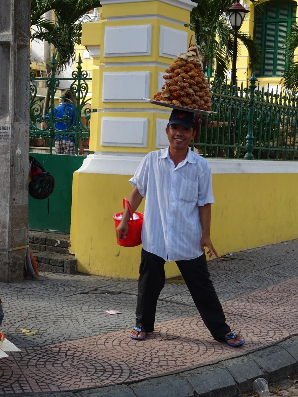 こんなパフォーマンスをしてくれます。ドーナッツのようなパンで、