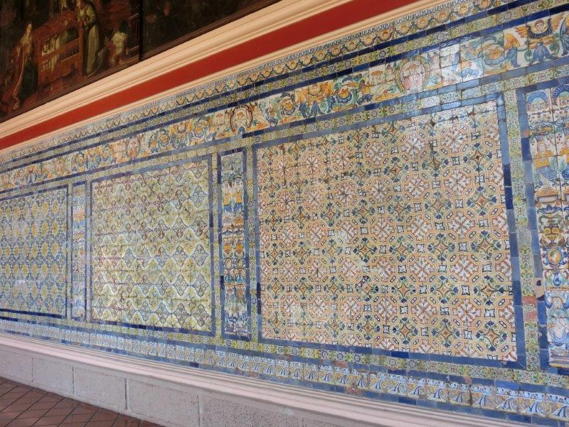回廊には一面青&黄色のタイルのアズレージョが。