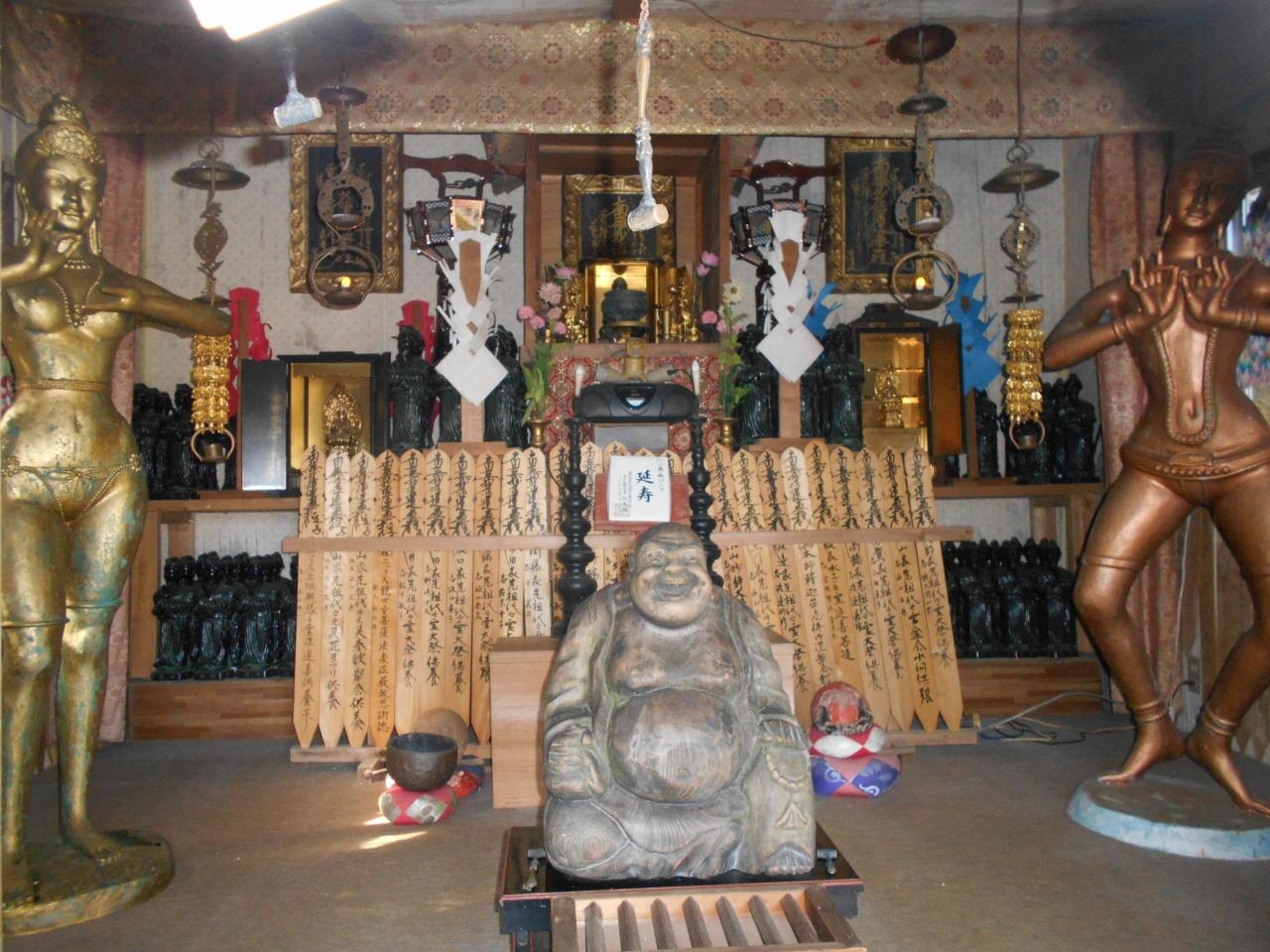 中は薄明りのみ。その上、こんな感じで仏様がスタンバイしておられる。