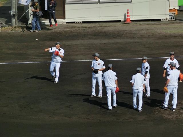 9時15分ごろ到着でしたが、すでに球場オープンで、練習していました。