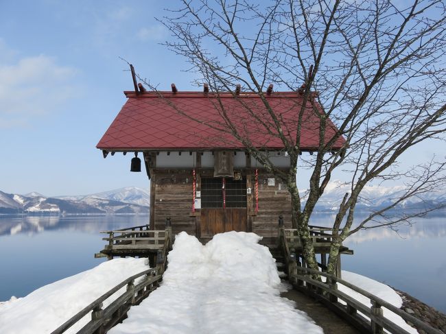 神社の裏手からは田沢湖が一望できました。
