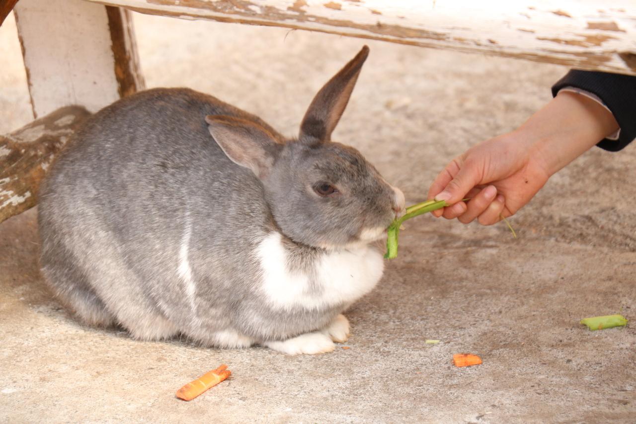 ふれあい広場ではウサギさんとああしたりこうしたり遊べる場所です。