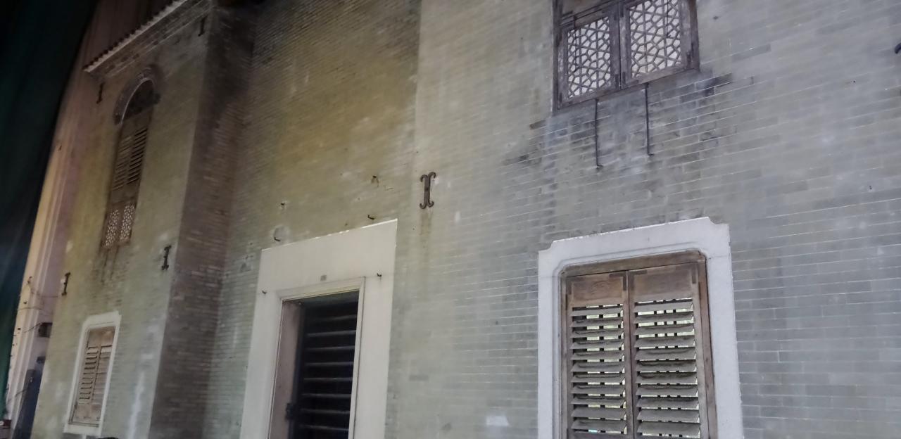 中庭を持つスタイルが出身地広東省の典型的な住居様式だそうです。外観は灰色のレンガ造りで一見質素ですが、邸宅内は天井が高くステンドグラスや透かし彫り等も施され、調度品等は豪華でした。