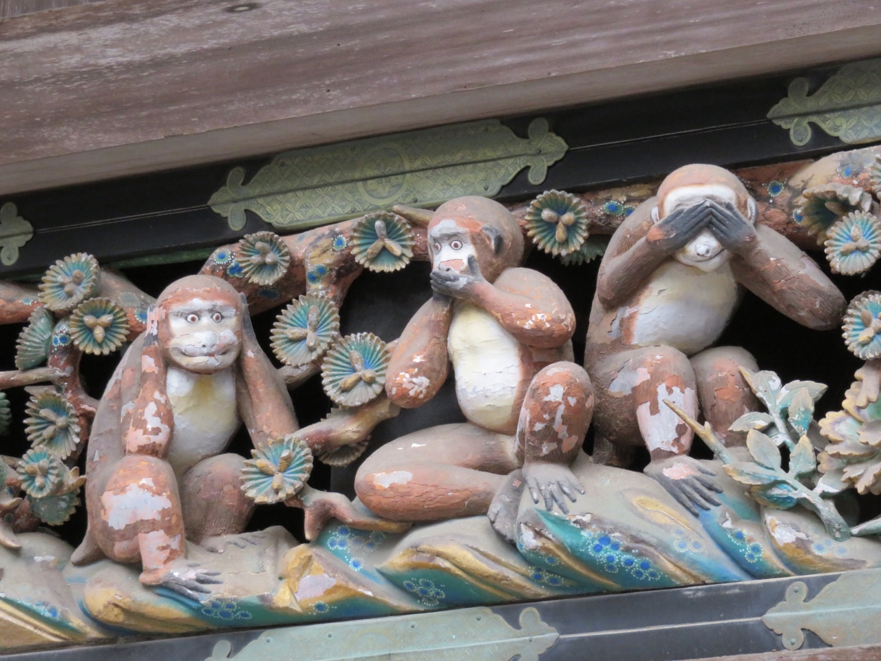 有名な「見ざる、言わざる、聞かざる」の彫刻。