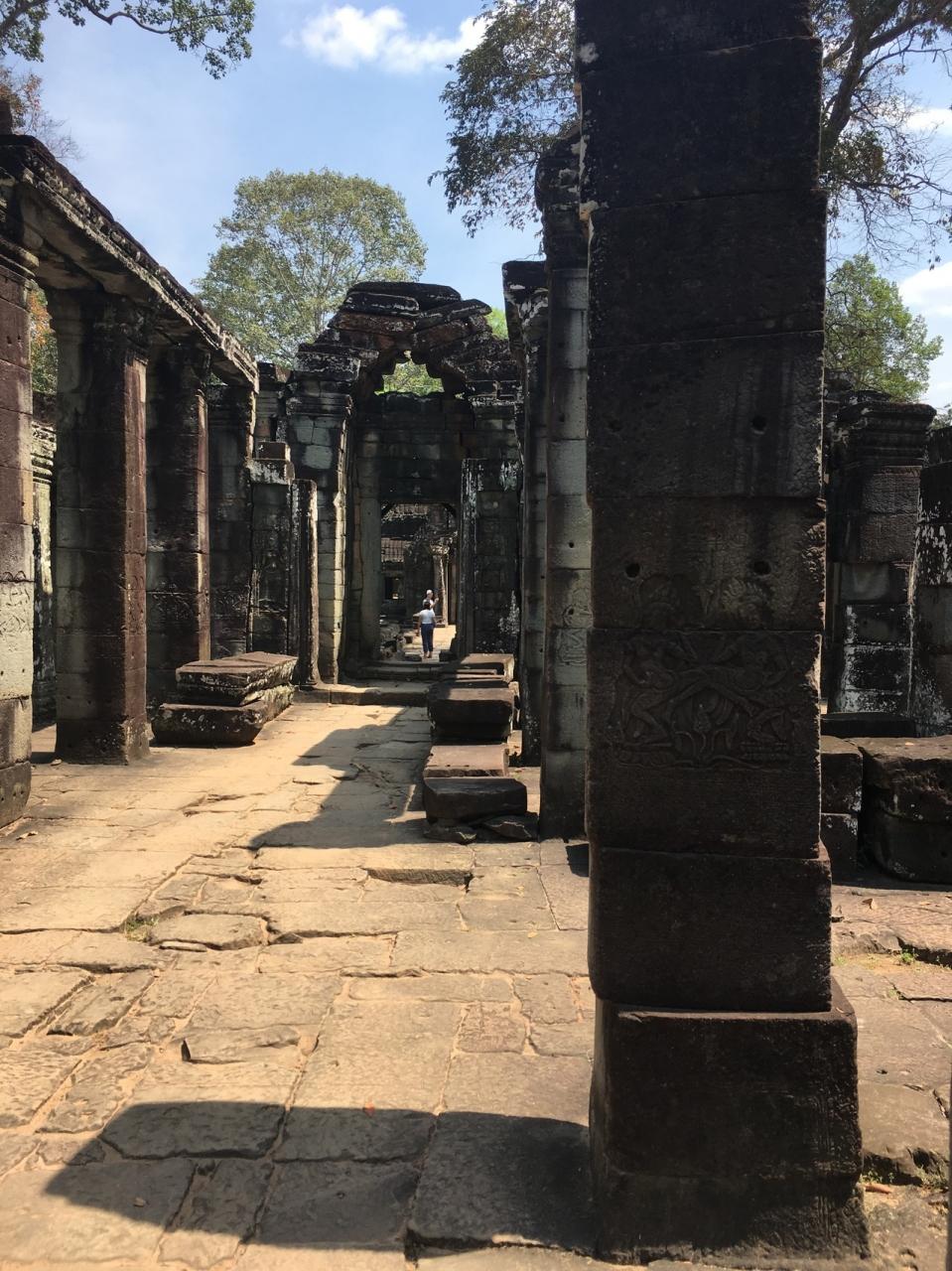 西門から入る 4面のクメール時代の観音像微笑みが 出迎えます。