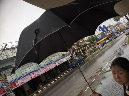 残念ながら雨模様。ホテルの人に相談して傘を借りました。