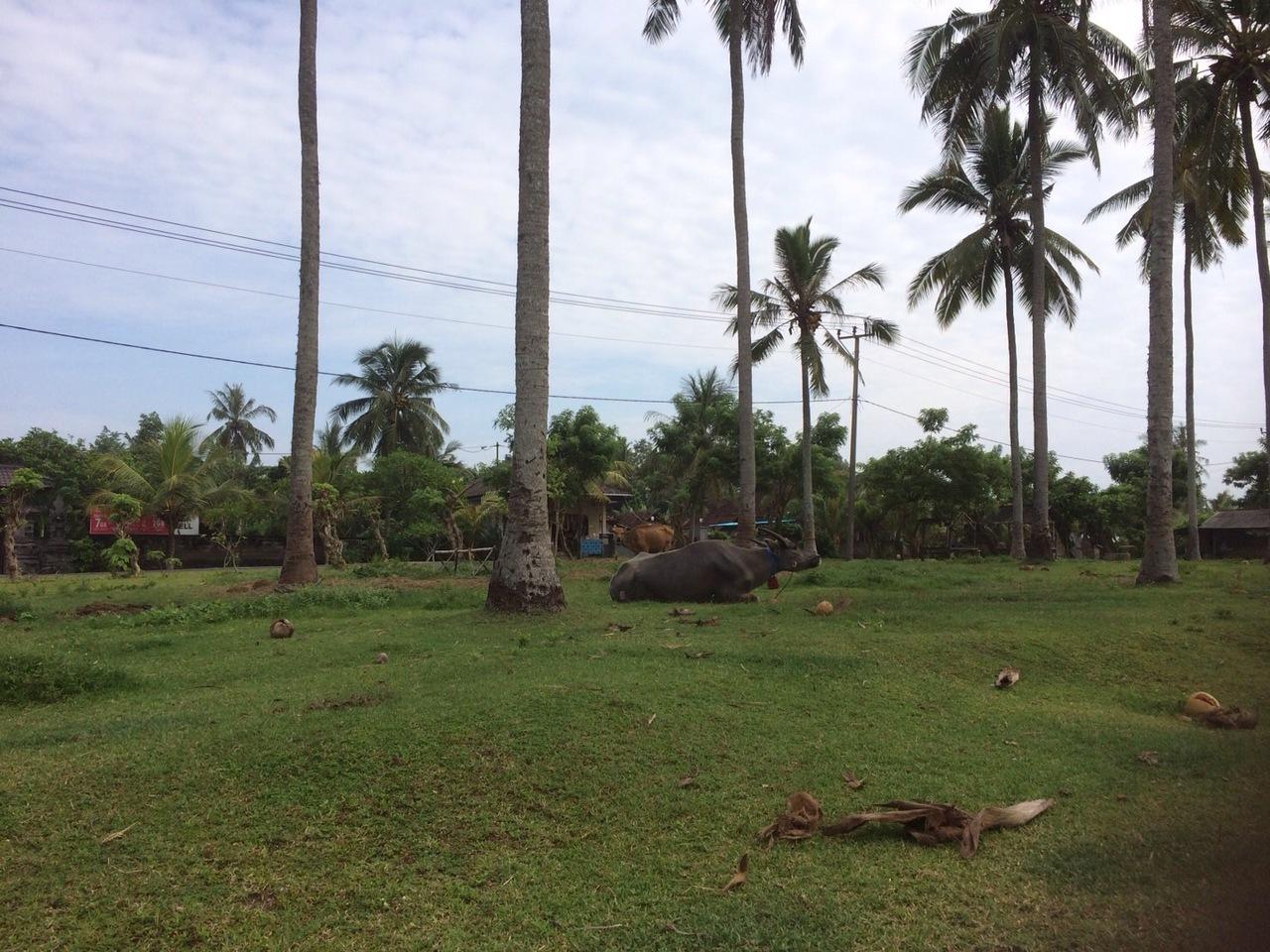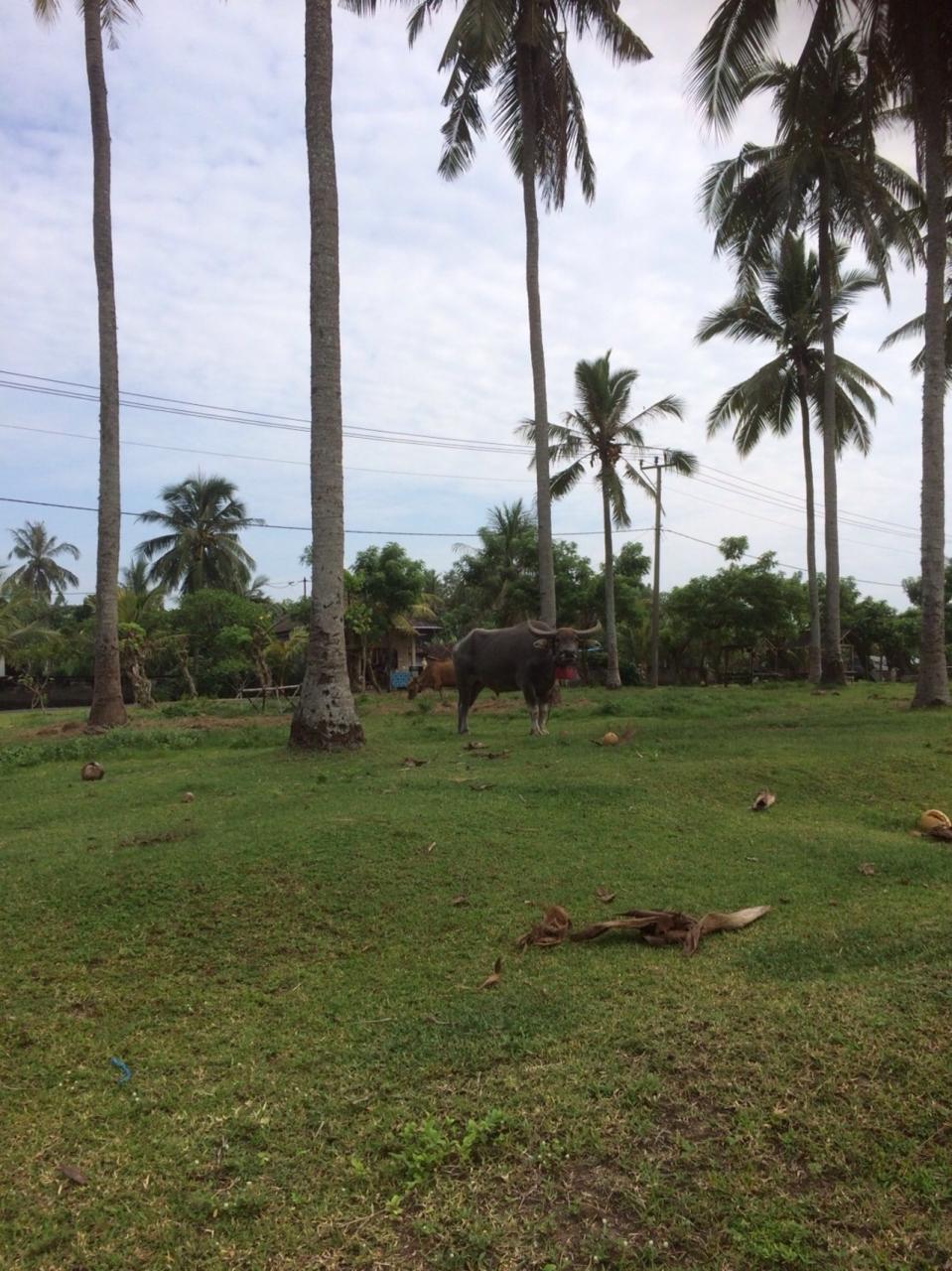 ヌガラへ行く途中、海沿いにちょっとした広場があり、そこに牛がいてその中に灰色の動物が……近くで写真を撮りたかったので寄っていくと、眠っていたのにムクっと起き上がり、ずっとこちらを見ています?旦那に遠くから「離れなさいー」と言われ、私は後ろ足で去りました。お客様も危ないよ〜と。聞けば気性が荒いらしい?それは怒りますよね〜、私は良い経験になりました!^ ^