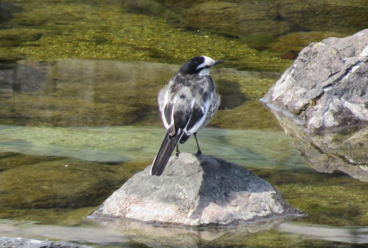 岩の上で半回転して、こちらを向いてくれました。間違いなく、顔が白いハクセキレイさんでした。体全体も白い鳥さんでした。