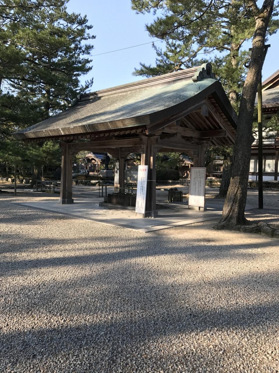 最後に発見できなかった〝絵馬〟と本殿をカメラで切り取って、出雲大社のお礼参りは終わります。そして出雲大社連絡所バス停方面へと歩いて行くと、前回最初に参拝した〝神楽殿〟へとたどり着きます。1月に訪れた時は朝早かったこともあり、ほとんど人影を見かけませんでしたが、さすがに昼間だと多くの人々でごった返していました。待ったなしの様相を呈している女子陣のお隣で、無欲の〝縁結び祈願〟、そして〝合格御礼〟の思いを込めて参拝している姿はどう見られているのか…なんて感じつつ手を合わせました。欲が深くなるとろくなことがないことは自覚しているので、控えめな〝お願い〟だけに留めて再び歩きはじめます。