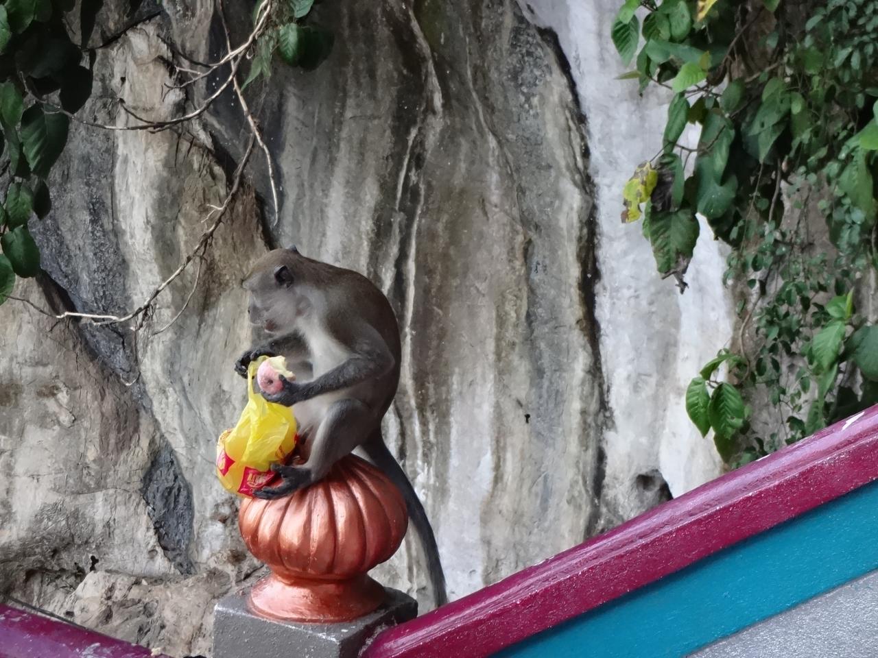 階段付近には、上っていた時にはいなかったおさるさん達が出てきていました。黄色い袋はもらったものか、奪ったものか・・・
