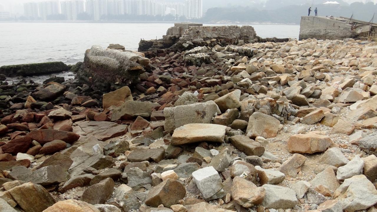 この小さな埠頭は灯台のメンテナンス用だと思いますが、足元に打ちつける波音を聴きながらラマ島との間を通る巨大コンテナ船を間近に見られる絶好のポイントでした。