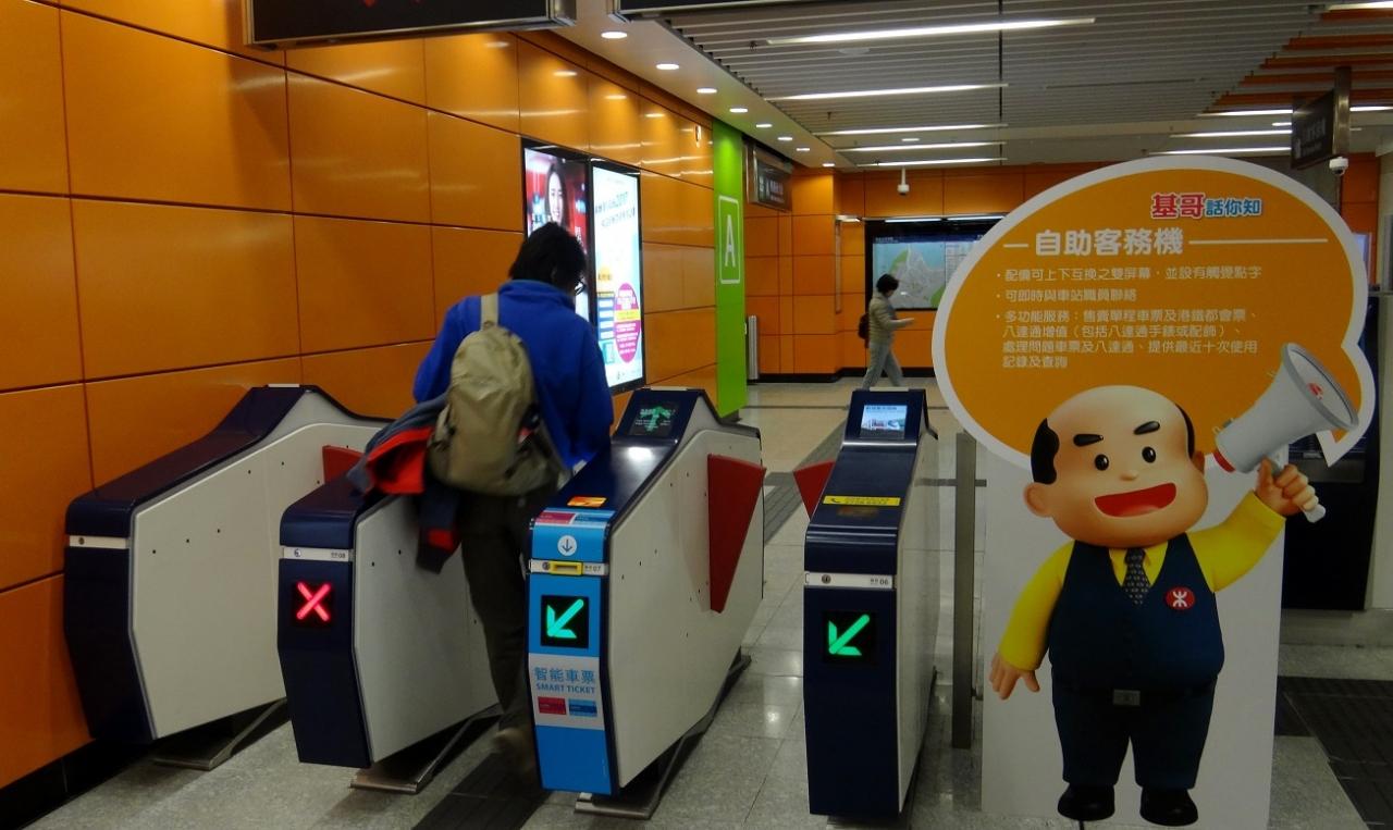 改札ゲート脇に例のMTRキャラクターの立て看板がドーンと、この前の焼身自殺騒ぎのときにマスコミ・インタヴューを受けていた本物の李さんはこんなに和やかな顔付きではなくて目つきも鋭いオッサンでしたが。