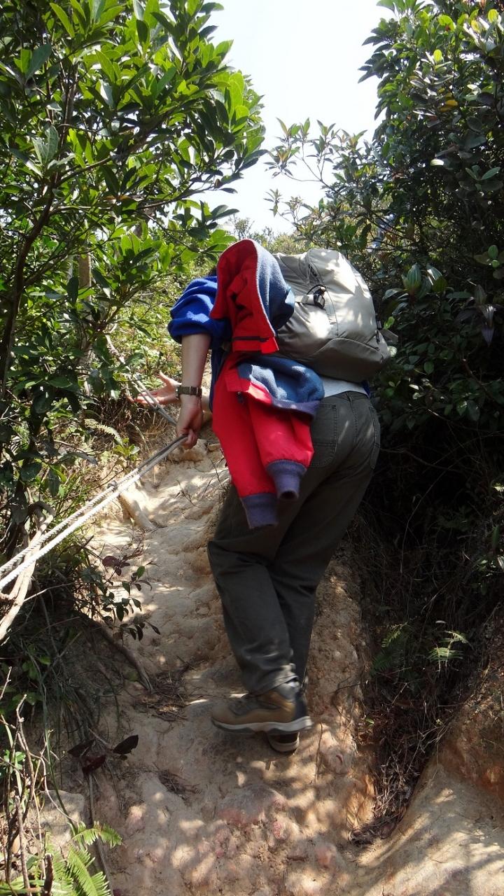 しばらくするとロープが張られていて、傾斜のきつい登りに。