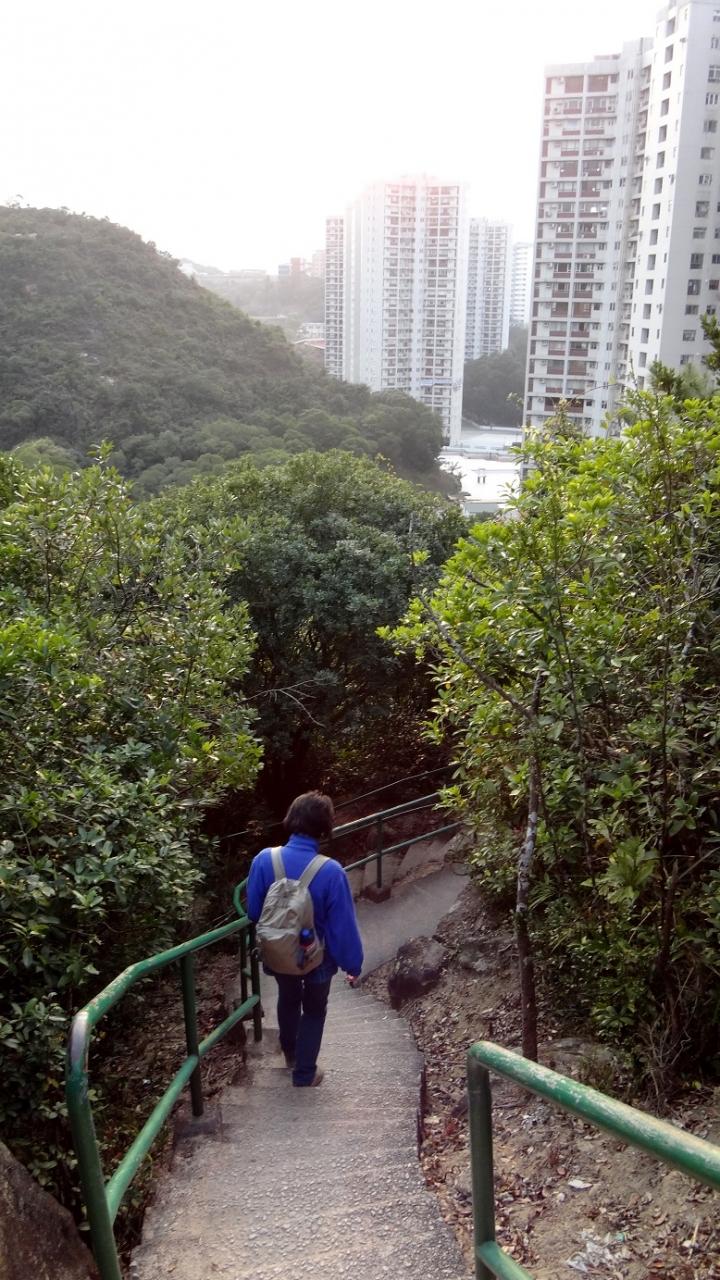 戻りは脇道ルートを下って。林立する利東邨の団地群と南灣のマンションへ落ち込んでいくような気になります。