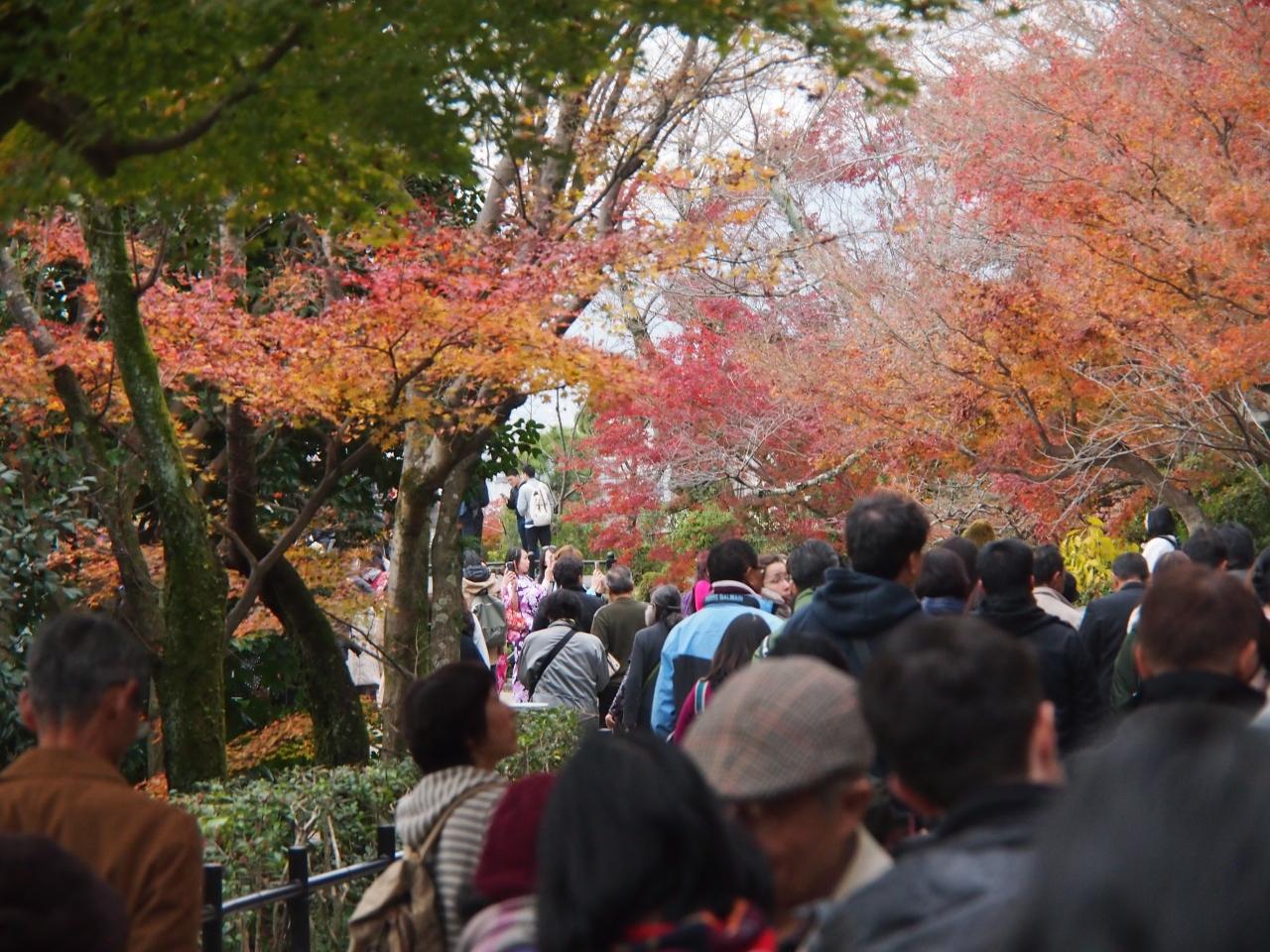 紅葉堪能しました。来てよかった。名残惜しいですがホテルに戻ることにします。荷物をもらって京都駅に向かいます。荷物をコインロッカーに預けて、最後に駅から便の良いド定番の清水寺に行きます。秋の紅葉シーズンだけあって、コインロッカーも清水寺行きのバス、どちらもめちゃ混みでした。もっとも、京都に混雑していない時期ってあるのかな?