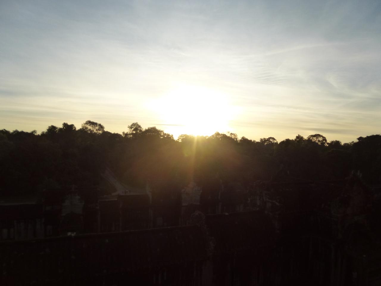 アンコールワットのてっぺんからの朝日。とても美しい。