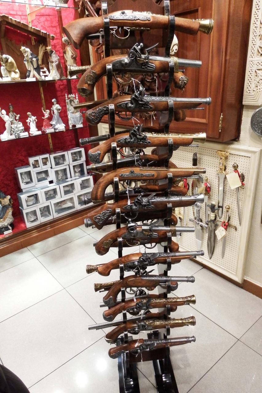 同じお店のこちらのクラシックな銃の展示の前で、動かなくなってしまった我が夫・・・。