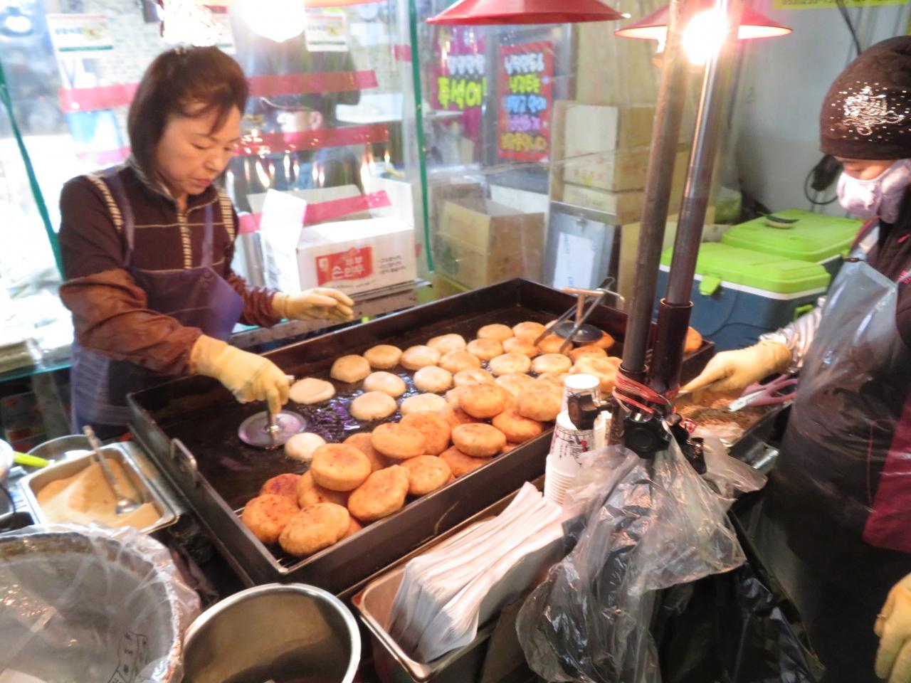 私はお腹いっぱいだったので、この屋台でピーナツ型のカステラ?(よく韓国で売っているやつ)を買い…