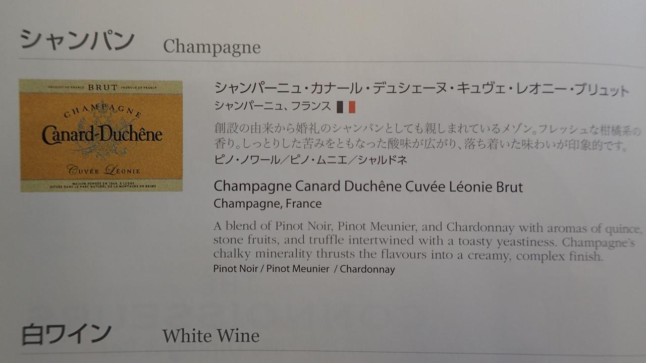 今回のビジネスクラスのメニュー