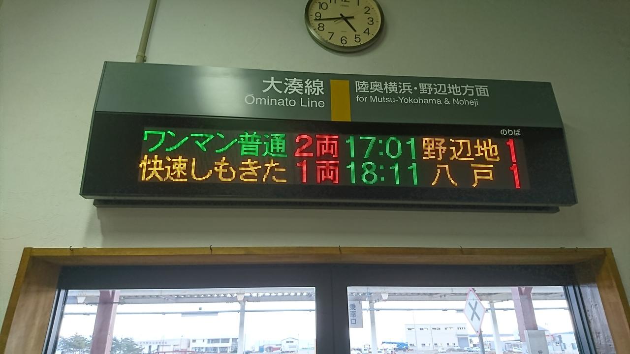 復路は始発の大湊駅より野辺地まで大湊線普通、野辺地から青い森鉄道の普通の乗り継ぎで八戸に戻りました。