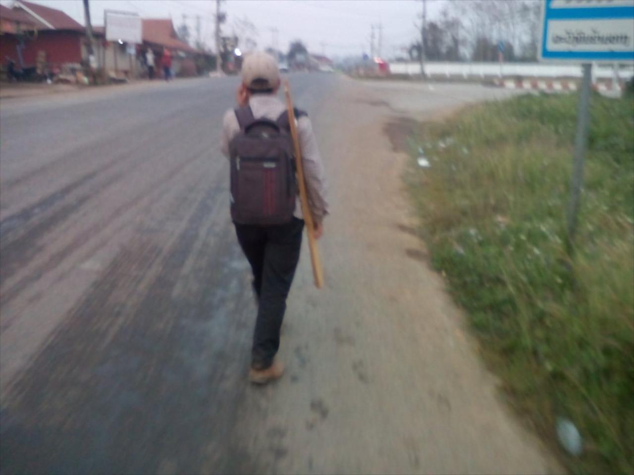 途中で大学の前を通る。ほとんどの学生がライフルの形に切った板を肩からぶら下げている。souphanouvong University